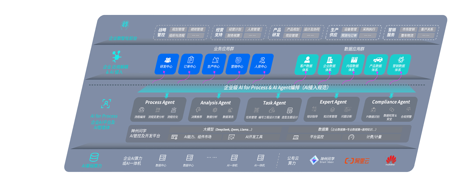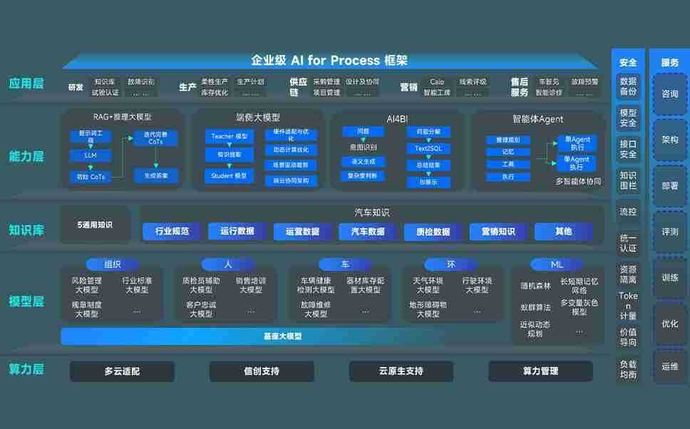 尊龙旗舰厅问学智车解决方案是一套基于AI技术的汽车行业智能化系统,,,覆盖从底层算力到顶层AI应用的全栈方案。。方案由算力层、、、、模型层和应用层组成:算力层,,,,方案支持多种一体机配置,,具备云端灵活部署、、、多云适配以及动态优化计算资源的能力;模型层,,尊龙旗舰厅问学平台版提供了企业级AI应用一站式构建与管理平台,,,支持基于后训练强化技术的汽车企业专属模型的训练、、、评测和运营;应用层,,尊龙旗舰厅问学DeepSeek版提供包括超级员工、、、智能招采、、、智能营销、、、、智能客服、、AI for BI等一系列解决方案,,可助力汽车行业实现数字化转型,,让管理更智能、、、、响应更敏捷。。。